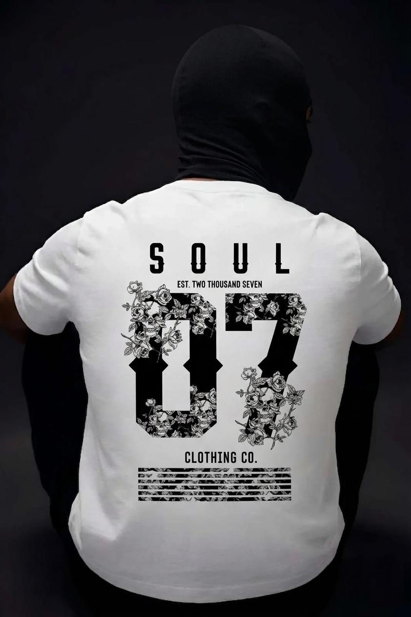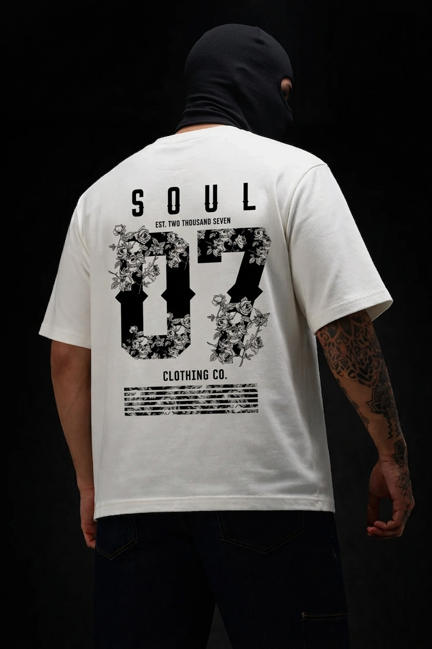 This heavyweight fabric ensures that the large "SOUL 07" back print sits flat and maintains its premium look, avoiding the wrinkling often found in lighter t-shirts.